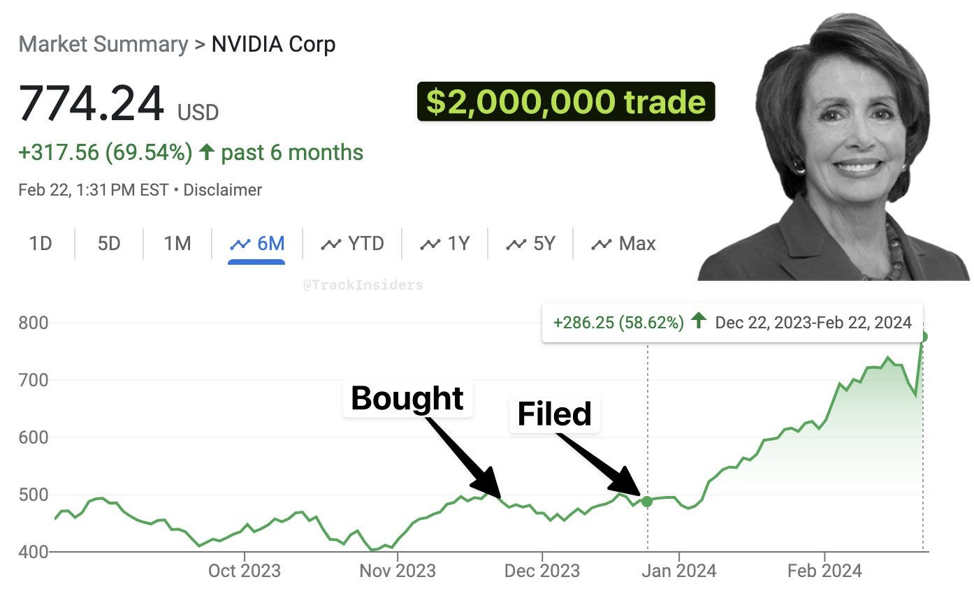 Pelosi and husband once earned ~$2 million in 93 days (~10 times her House salary) from buying Nvidia Calls: