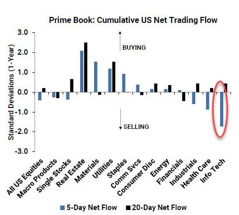 Hedge funds are dumping tech stocks at the fastest pace in 7 months, ending 6 consecutive weeks of inflows into tech stocks.