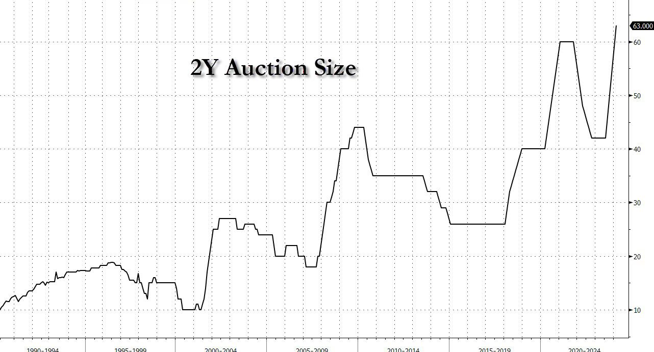 Today's 2Y Treasury bond auction session has a value up to $63 billion - largest since 1990
