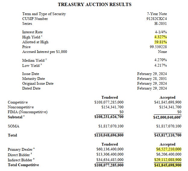 Auction of USD 42 billion 7Y bonds: continues to show slightly reduced demand