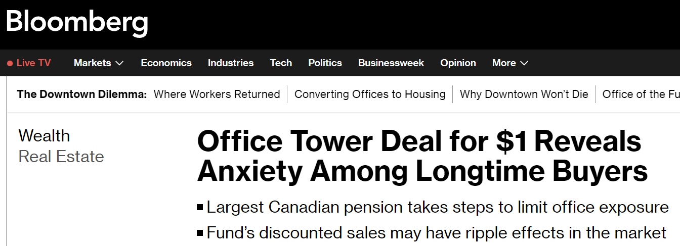 A Canadian pension fund just sold 29% stake a 6-story office building in New York (360 Park Avenue South) for 1 USD.