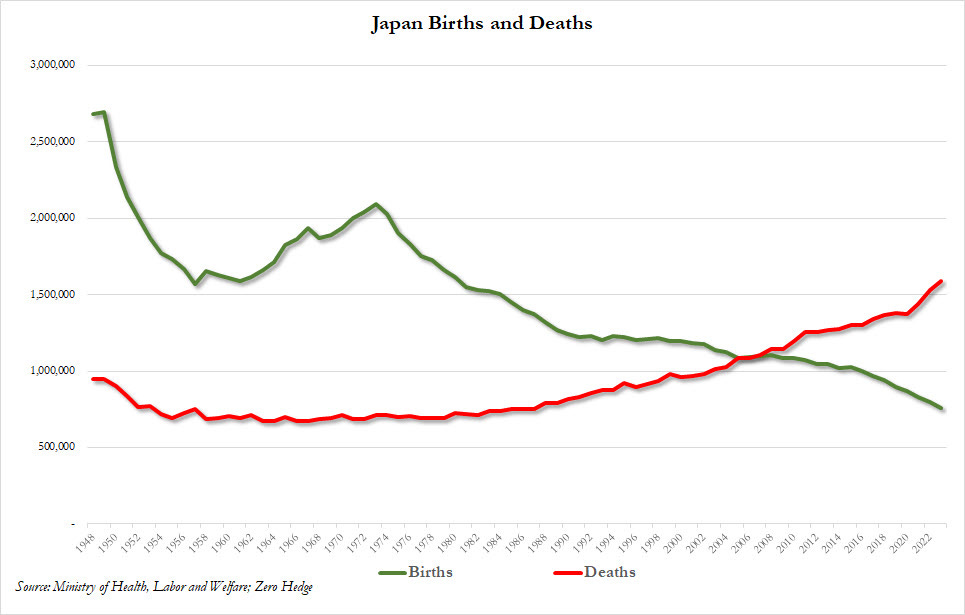 Japan's demographic structure is alarming: Death rate far exceeds birth rate.