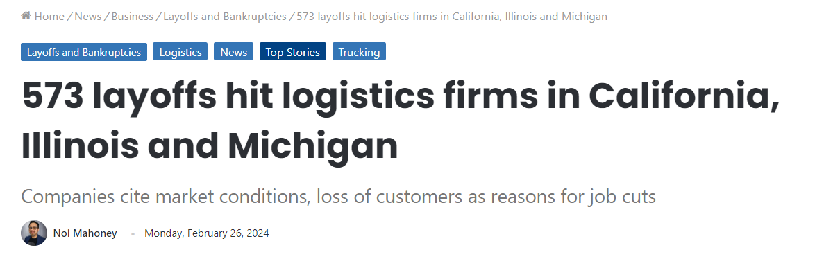 Logistics companies in California, Illinois, and Michigan announce mass layoffs and facility closures.