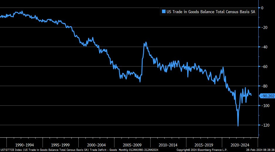 January 2023 trade deficit hits 90.2 billion USD (> estimate: 88.5 billion USD and previous month: 87.9 billion USD)