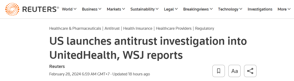 US Department of Justice launches antitrust investigation against health insurer UnitedHealth