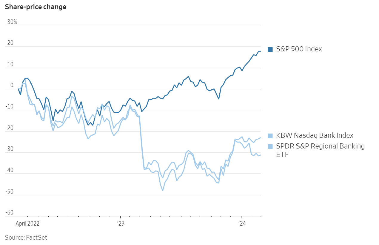 SPDR S&P Regional Banking ETF also fell more than 1%, while the bank stock composite index fell < 0.5%, S&P 500 rose slightly.