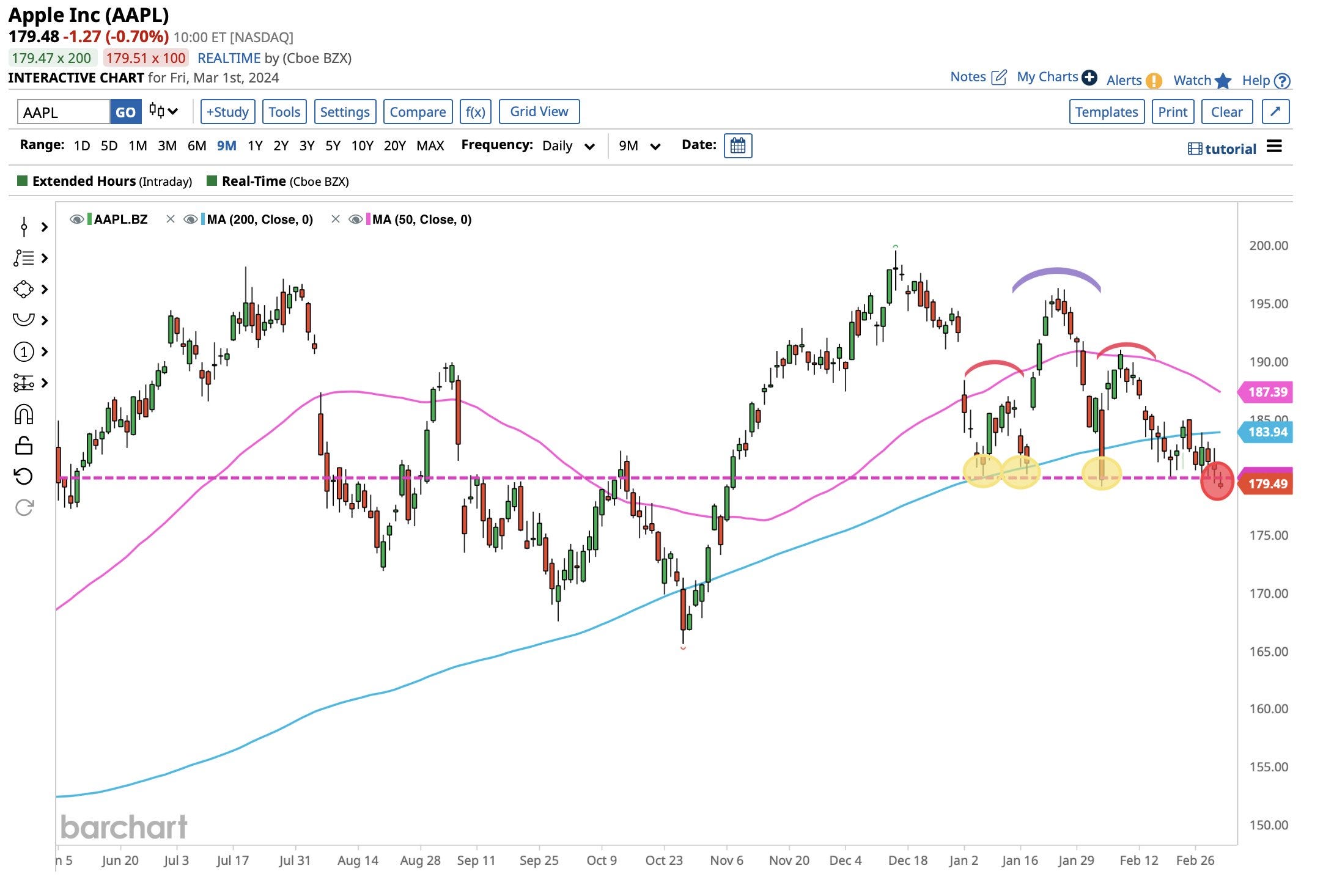 Apple stock falls after Goldman Sachs removes it from top conviction buy list.
