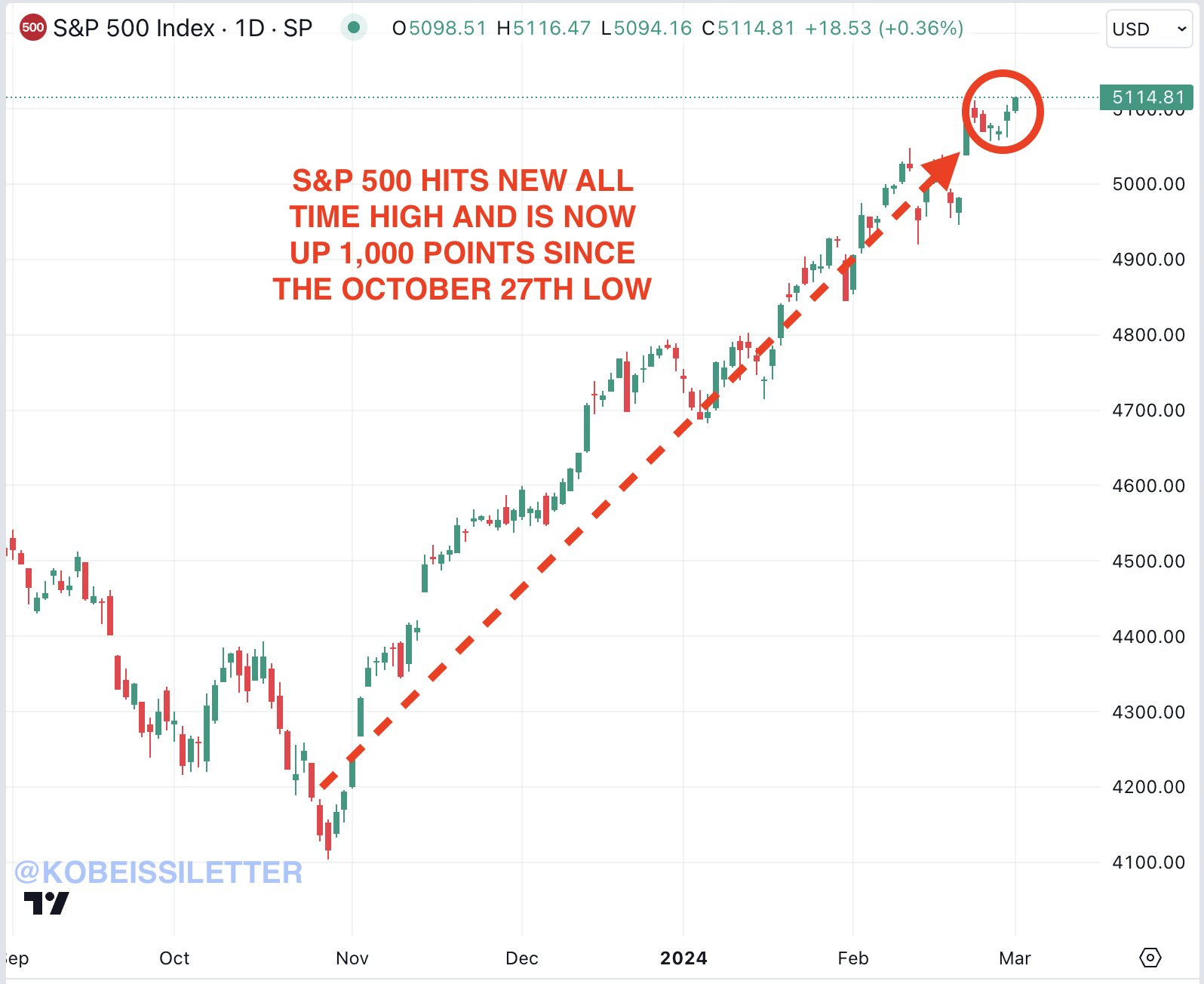 S&P 500 surpasses 5,116: up +25% from 10/27, +130% from the bottom (March 2020)