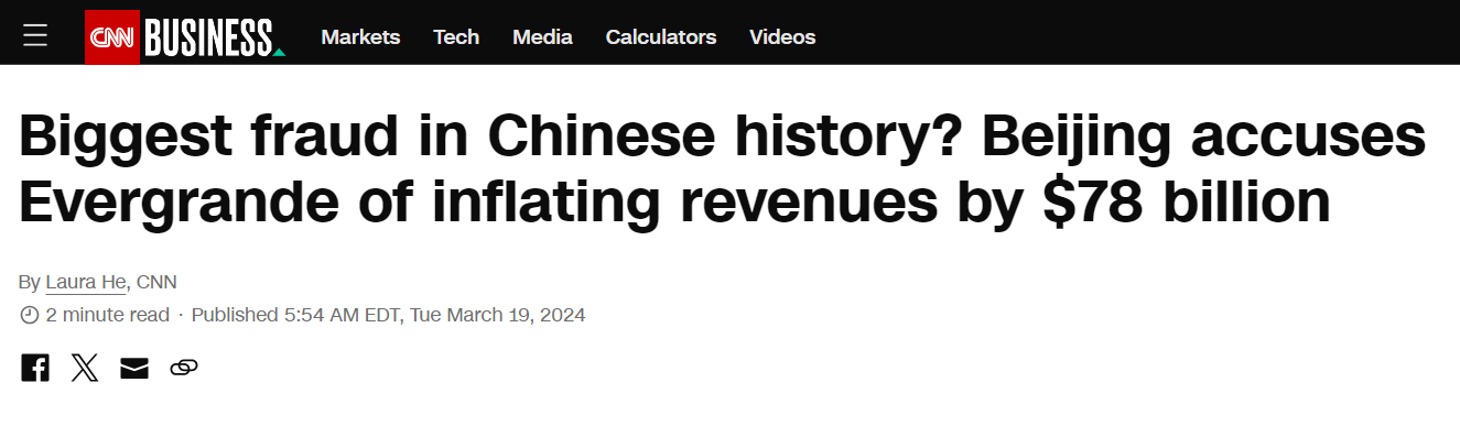 China accuses Evergrande of fraud totaling 78 billion USD.