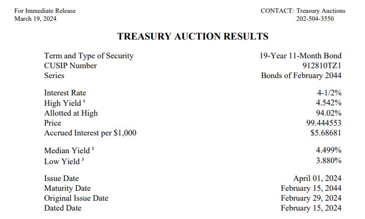 Successful auction of $13 billion 20Y US Treasury bonds