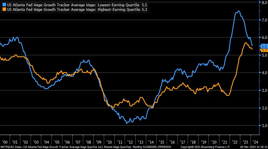 Wage growth for the lowest-income workers continues to decline rapidly (Atlanta Fed)