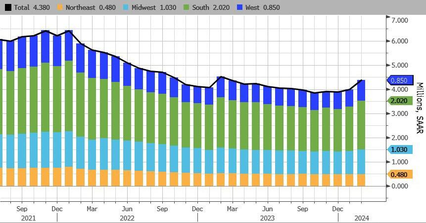 Total existing home sales SAAR rose to 4.38 million - highest level in 12 months