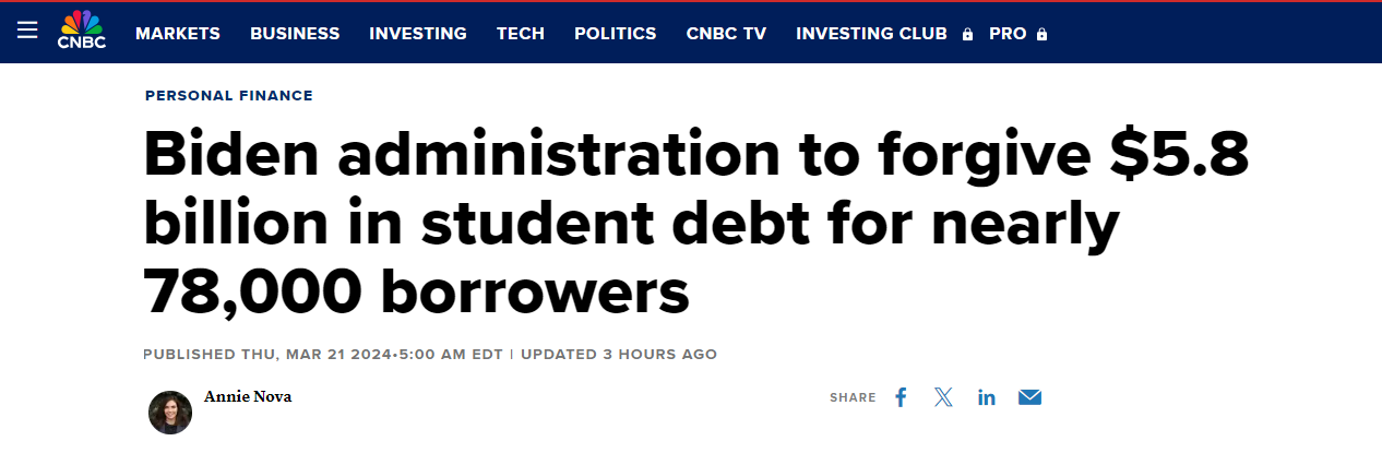 Biden administration cancels $5.8 billion in student debt for nearly 78,000 borrowers