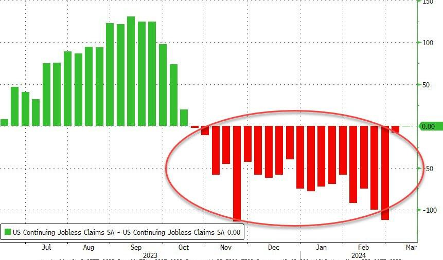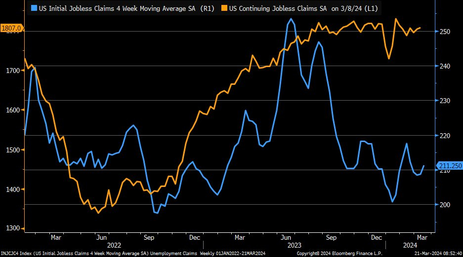 Continuing claims revised lower in the previous week - 20th consecutive week of downward revisions