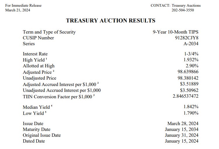10Y TIPS auctioned only once every 3 months, most demand from foreign investors.