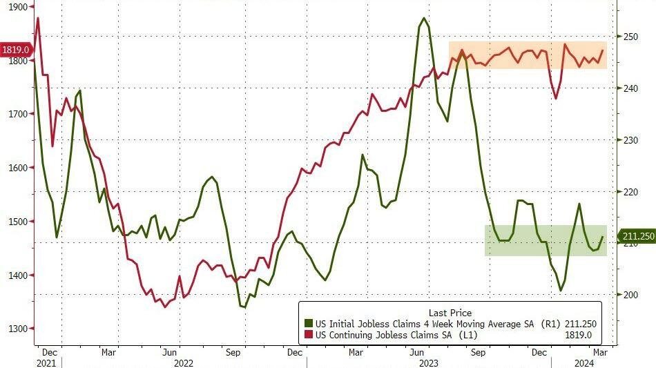 Continuing claims rose slightly to 1.819 million people, higher than expected 1.815 million