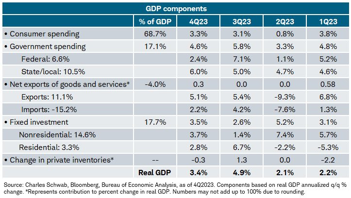 1. GDP grows at a high rate in Q4 due to consumer strength
