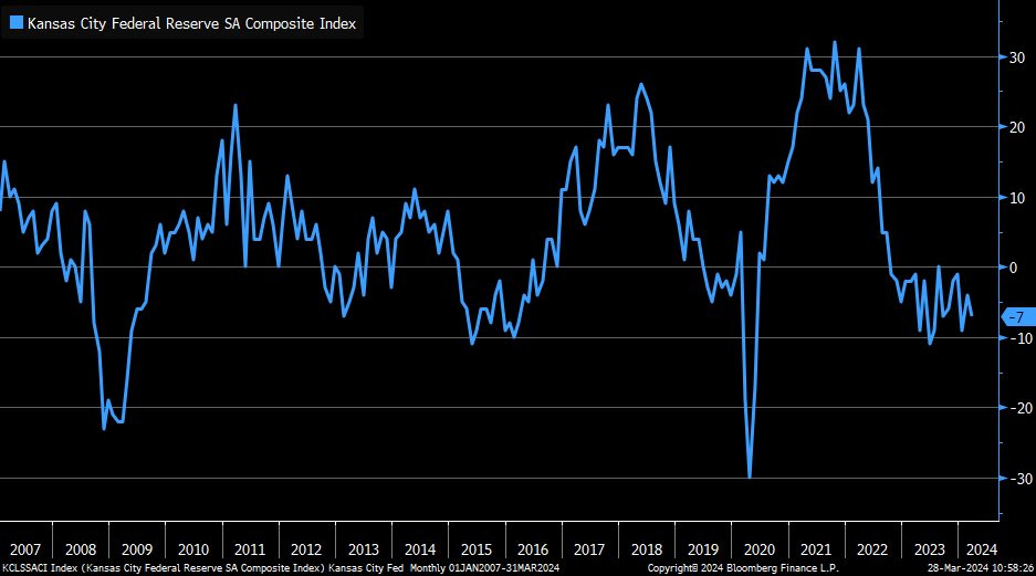 Kansas March manufacturing index down to -7 vs estimate -4 & previous -4