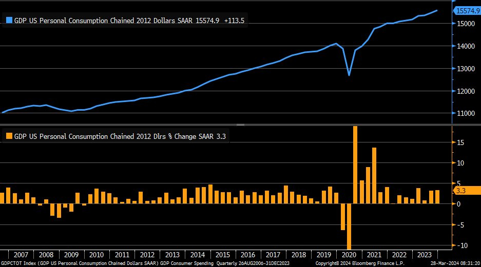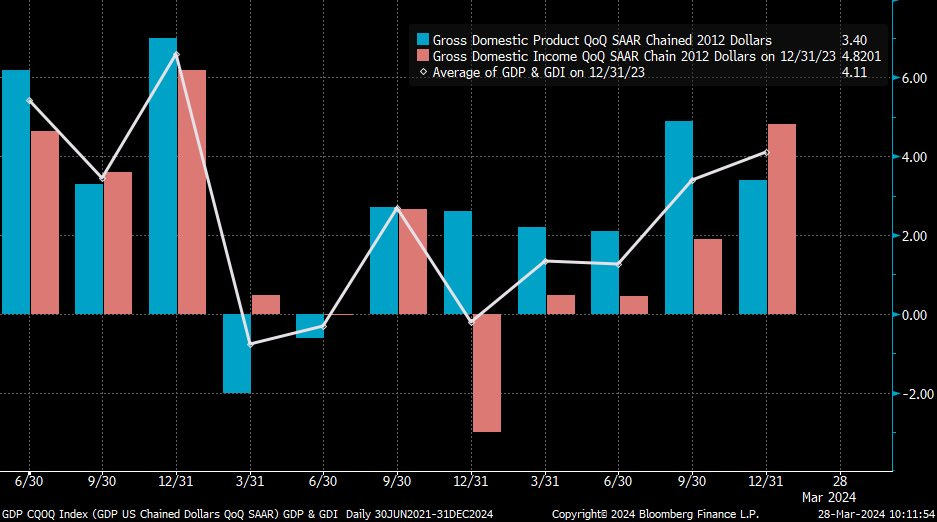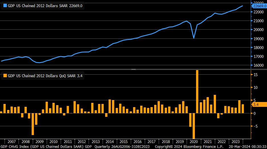 Final revision to real Q4/2023 GDP up from +3.2% Q/Q to +3.4% Q/Q, higher than economists' expected +3.2% Q/Q