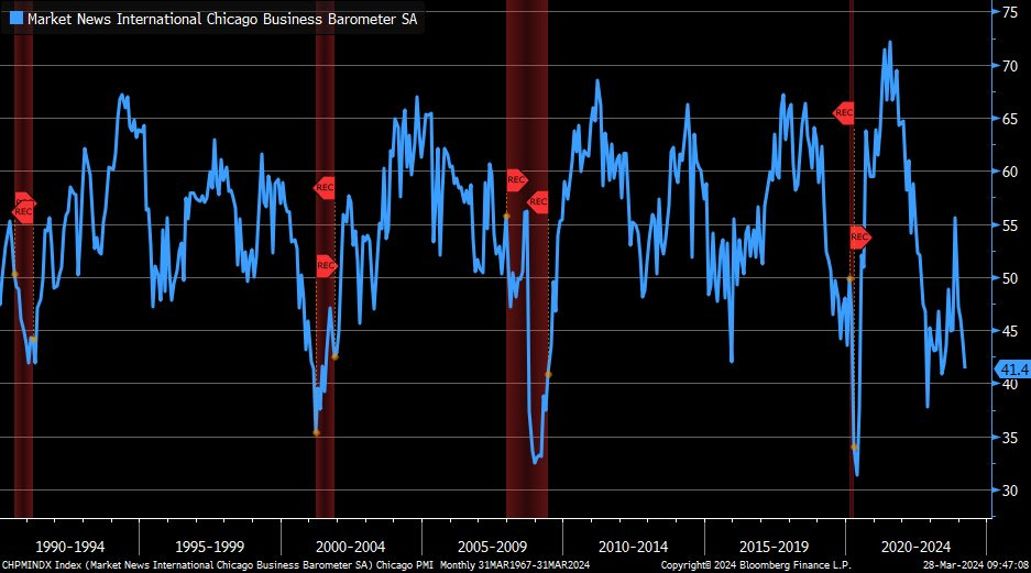 March Chicago PMI down to 41.4 from 44 previous month