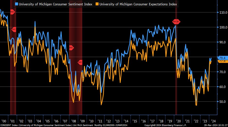 Consumer Sentiment Index revised up from 76.5 to 79.4 - highest level since mid-2021.