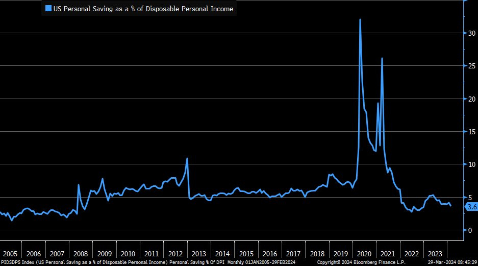 Savings rate in February drops to 3.6%, lowest since December 2022