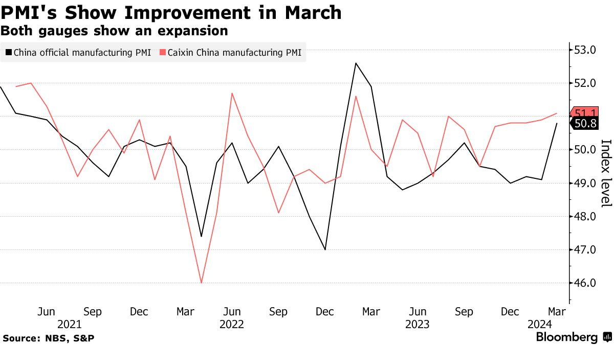 Caixin manufacturing PMI rises to 51.1 - highest in over 1 year, up from February's 50.9 and above forecast 51