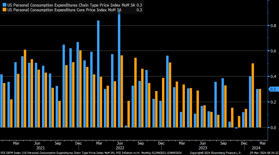 Core PCE +0.3% M/M, = estimate +0.3% and slightly down from +0.5% previous month