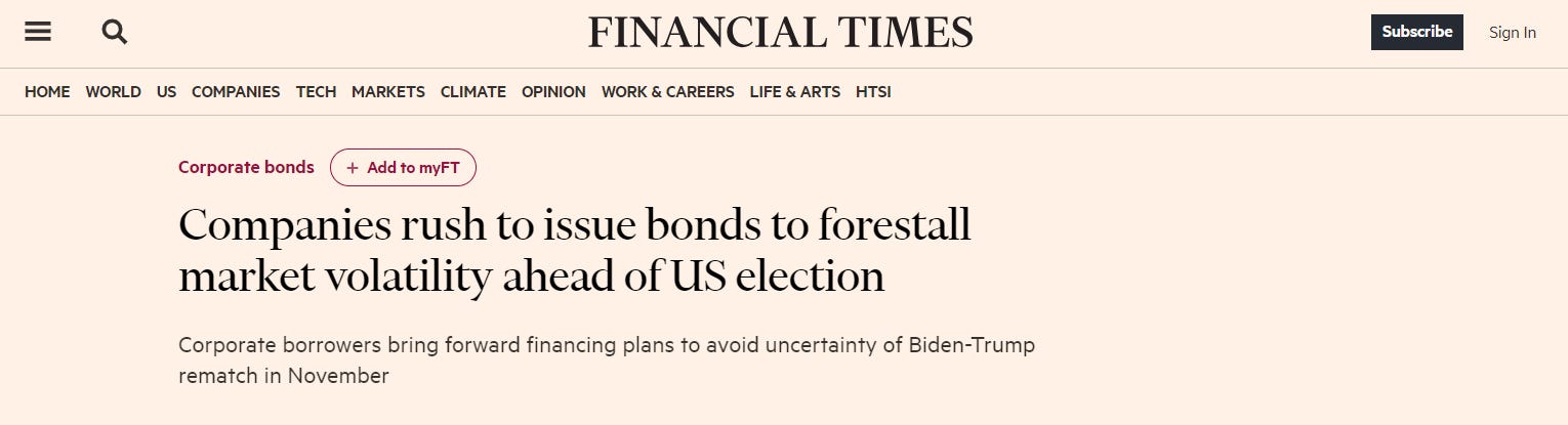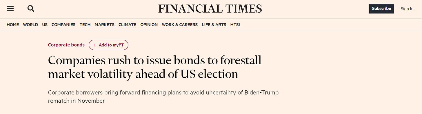 Companies rushing to issue bonds to lock in rates before US election market volatility