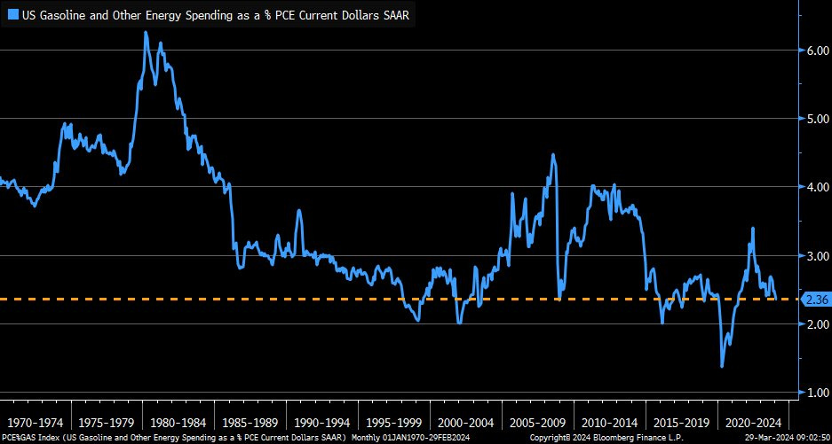 February spending on gas and energy drops to 2.36% of total personal consumption - quite low historically