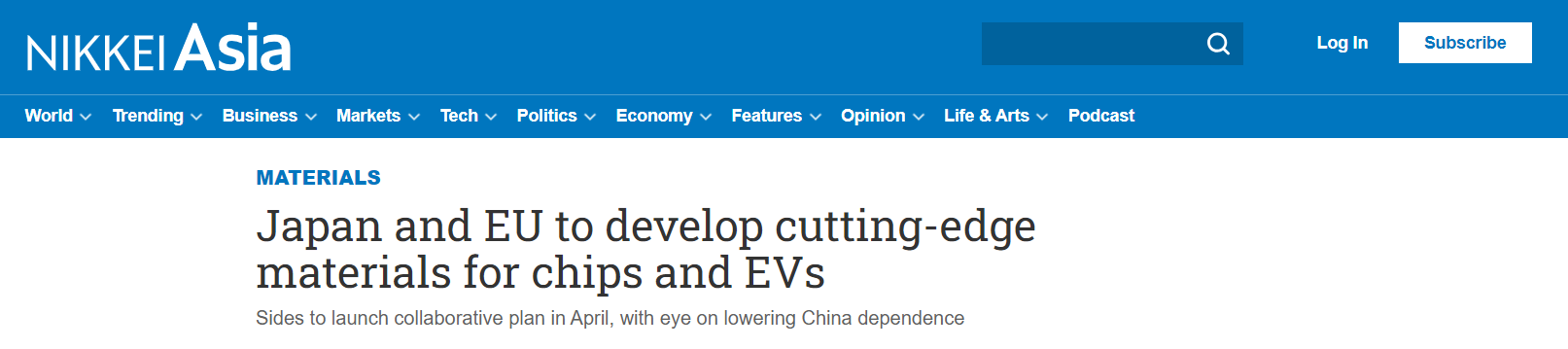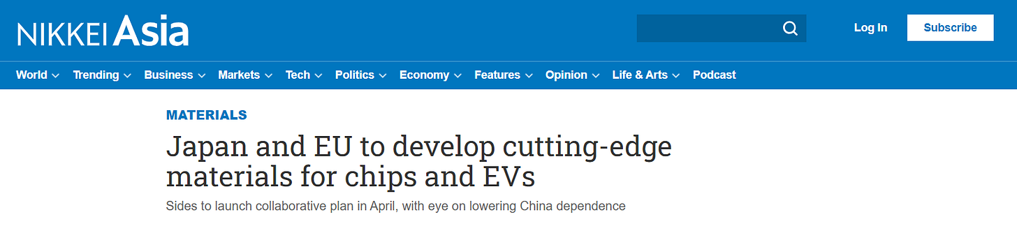 Japan and EU plan cooperation on advanced materials for chips and EV batteries to reduce dependence on China