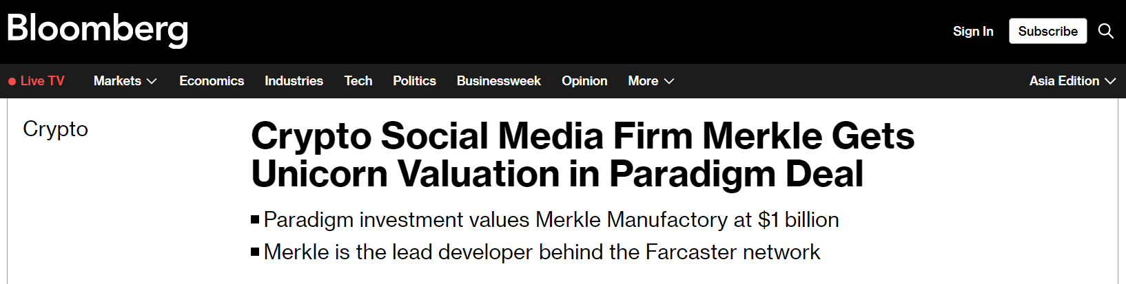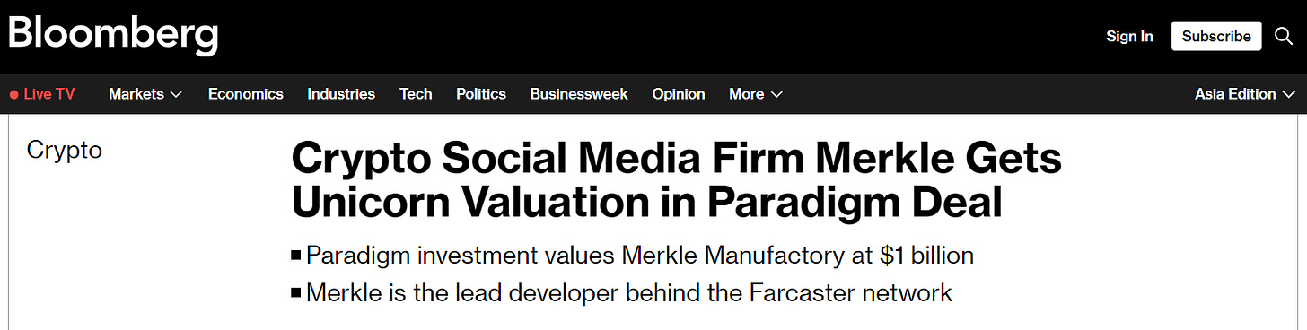 Farcaster parent - Merkle Manufactory, about to become unicorn with latest funding round, valuation up to 1 billion USD