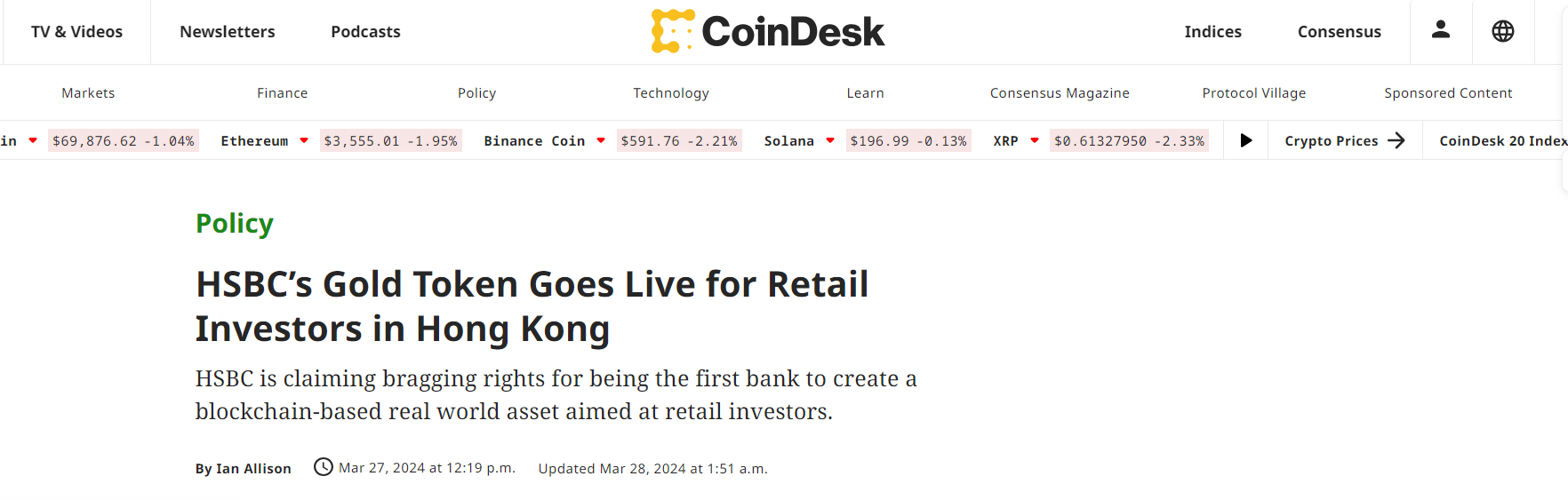 HSBC launches Gold Token for retail investors in Hong Kong, first bank to issue real-world asset on blockchain