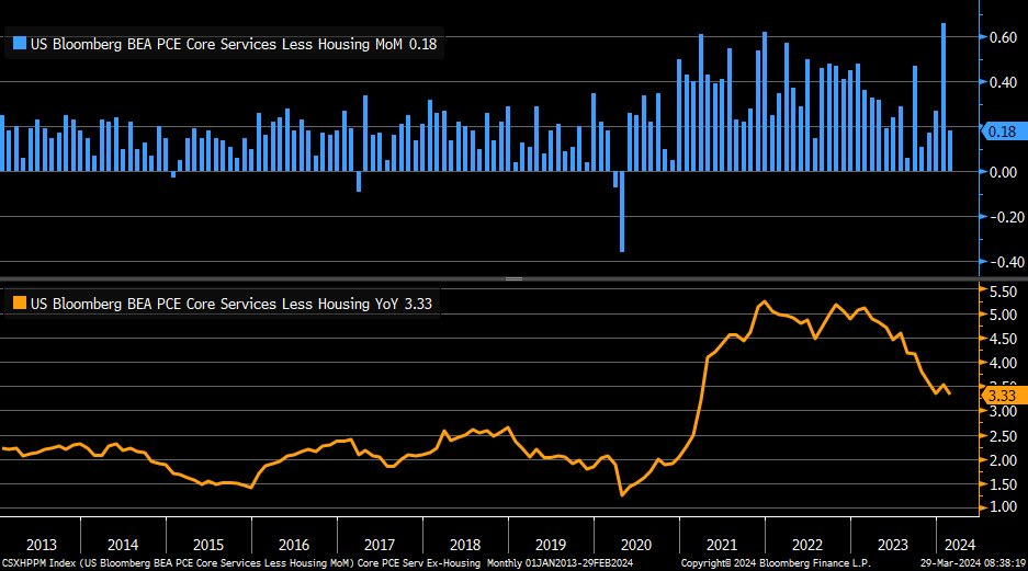 February Supercore PCE (core services ex-housing) +0.18% M/M - sharp slowdown from previous month's increase, equivalent to +3.33% Y/Y