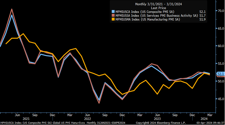 S&P Global Services PMI falls to 51.7 in March (in line with expectations but down from 52.3 previous month).