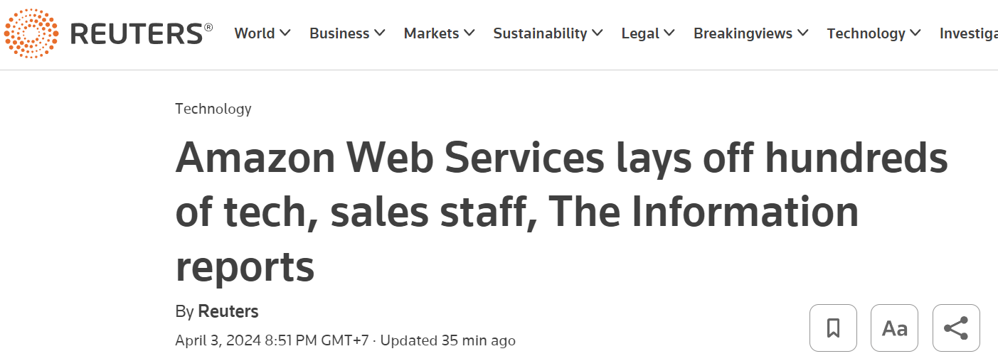 Amazon Web Services lays off hundreds of technical and sales employees.