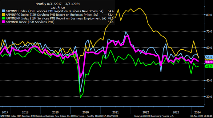 ISM Services PMI falls to 51.4 in March (< expected 52.8 & previous 52.6).