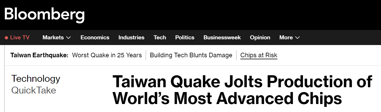 7.7 Richter earthquake in Taiwan is disrupting chip companies' production on the island, threatening global supply.