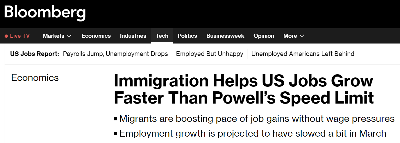→ Overall, surging immigration is allowing job growth to continue without inflationary pressure from wages.