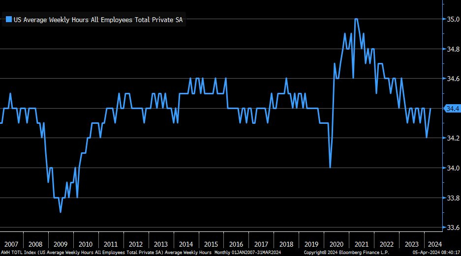Average hourly earnings growth eased slightly to +4.1% YoY.
