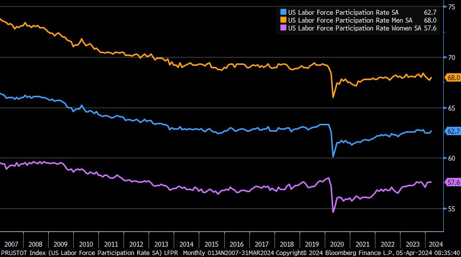 Labor force participation rate increased slightly to 62.7% (beat estimate 62.6%, previous 62.5%), mainly among men.
