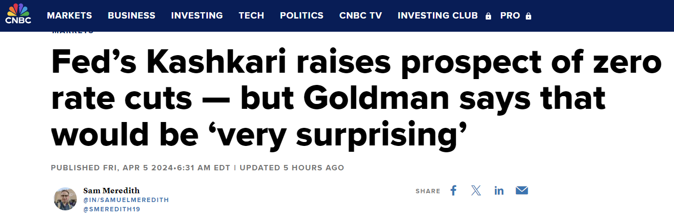 Fed Kashkari (04/04): Proposes not cutting interest rates this year