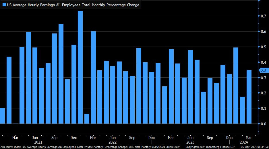 Average hourly earnings rose +0.3% MoM (in line with estimate and up slightly from previous 0.2%).