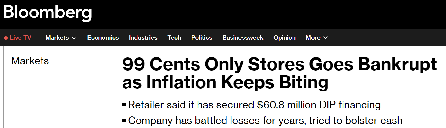 Discount retailer 99 Cents Only Stores files for bankruptcy.