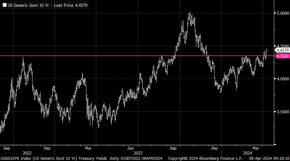 T-bond 10Y yield ~ 4.4% and trending to continue rising near 5%.