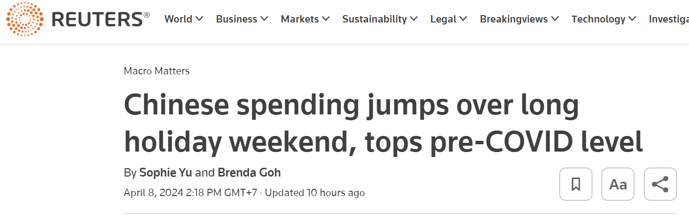 China: Holiday spending increase boosts hopes for improving consumer confidence.