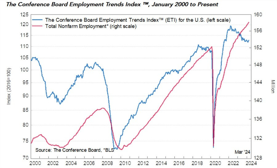 CB Employment Trends Index slightly up in March to 112.84 (> previous 111.85).