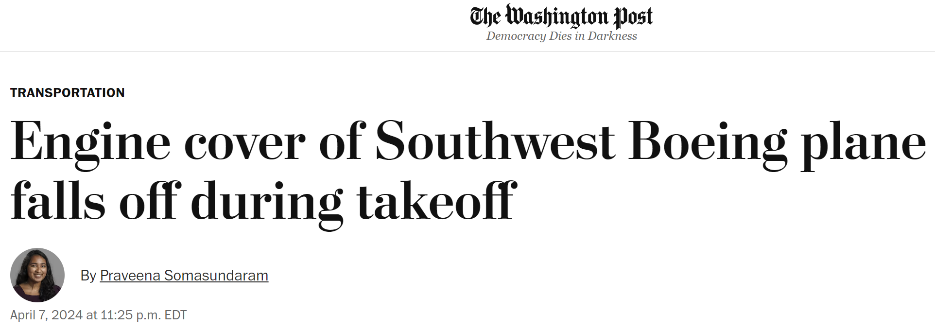 Southwest Airlines' Boeing 3695 had engine cowling detach during takeoff.