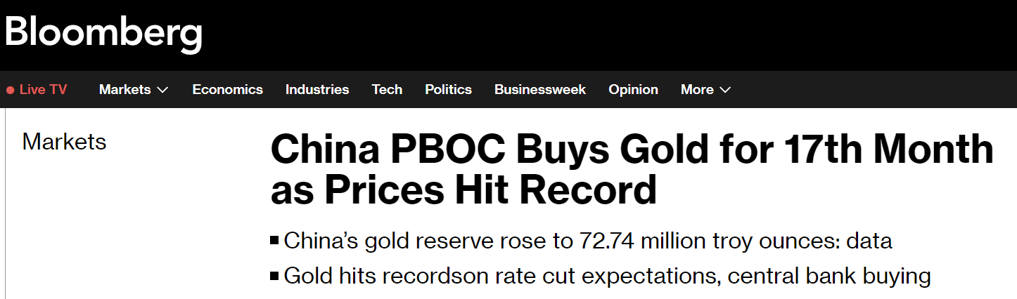 PBOC continuously buys gold for 17 consecutive months, increasing gold reserves to 72.74 million ounces in March 2024.