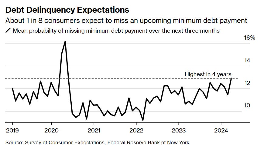 Consumer worry indicator about losing debt repayment ability rises to highest in 4 years (12.9%).